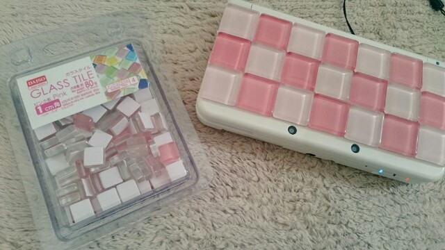 3DSのカバー(下画像のしましまの部分)とガラスタイルを敷き詰めた時のサイズがぴったりなことに・・・。