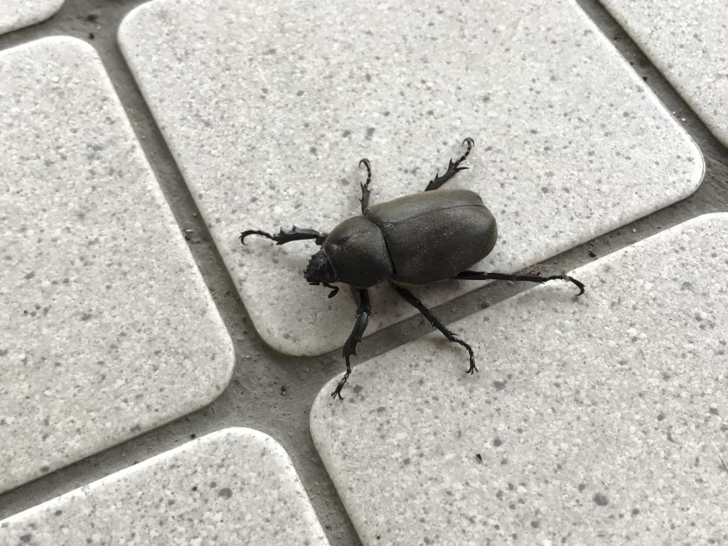 カブトムシちゃん(♂)は先日自宅の駐車場にいたのですが、今度は職場にまで!!!